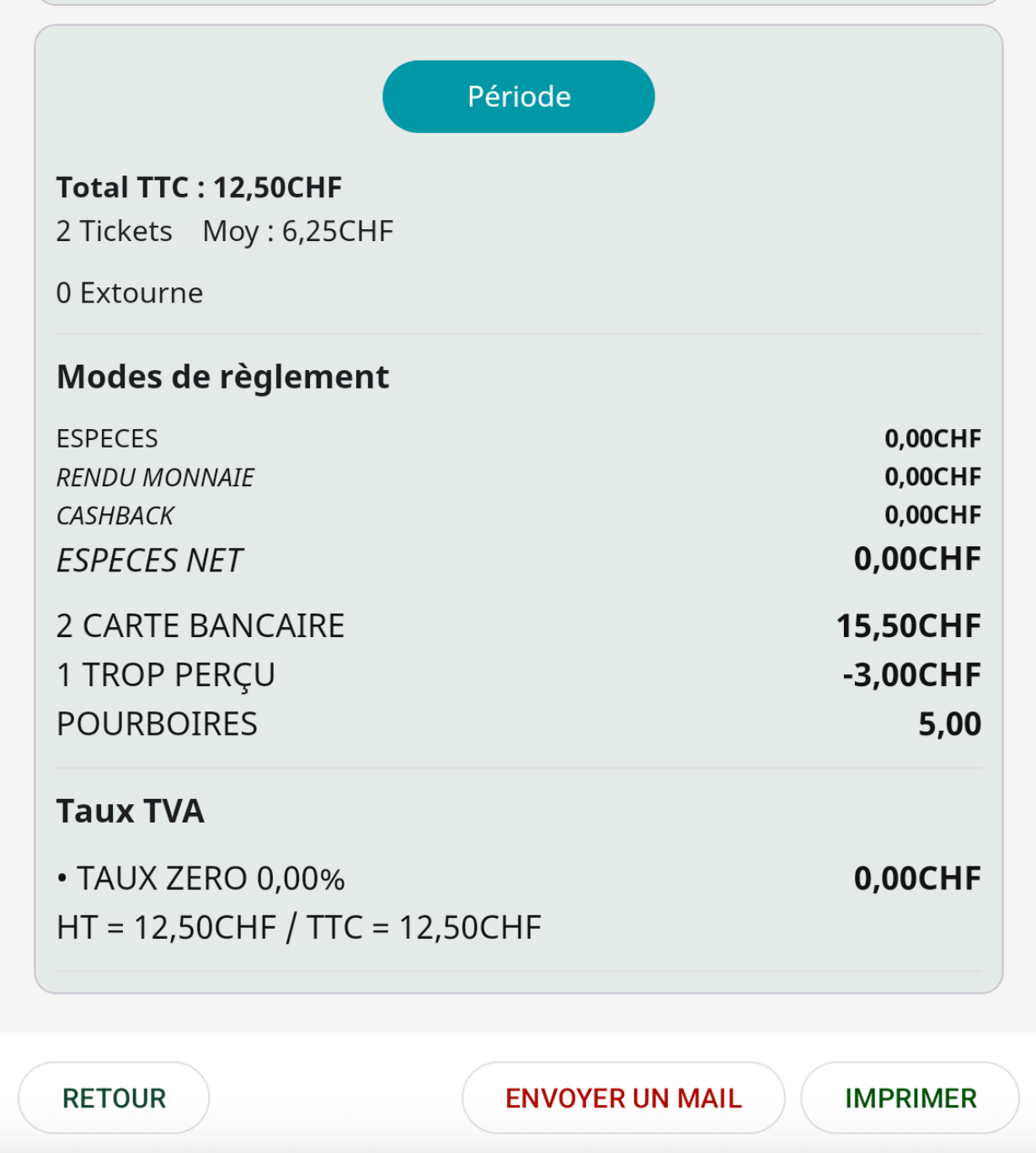 - Dans la clôture de caisse, sur le ticket Z de fin de journée.