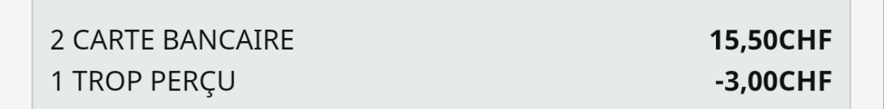 Si l’addition est de 45.00 CHF et que le client souhaite ajouter 5.00 CHF de pourboire, vous saisissez :