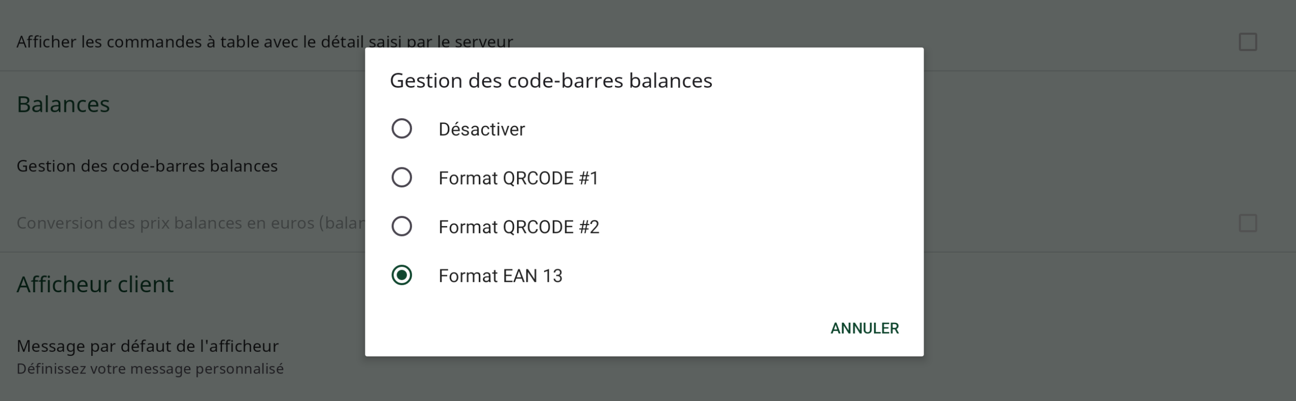 - PARAMÈTRES > Gestion des codes-barres balances