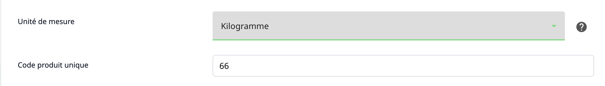 - Renseignez le champ “Code produit unique”