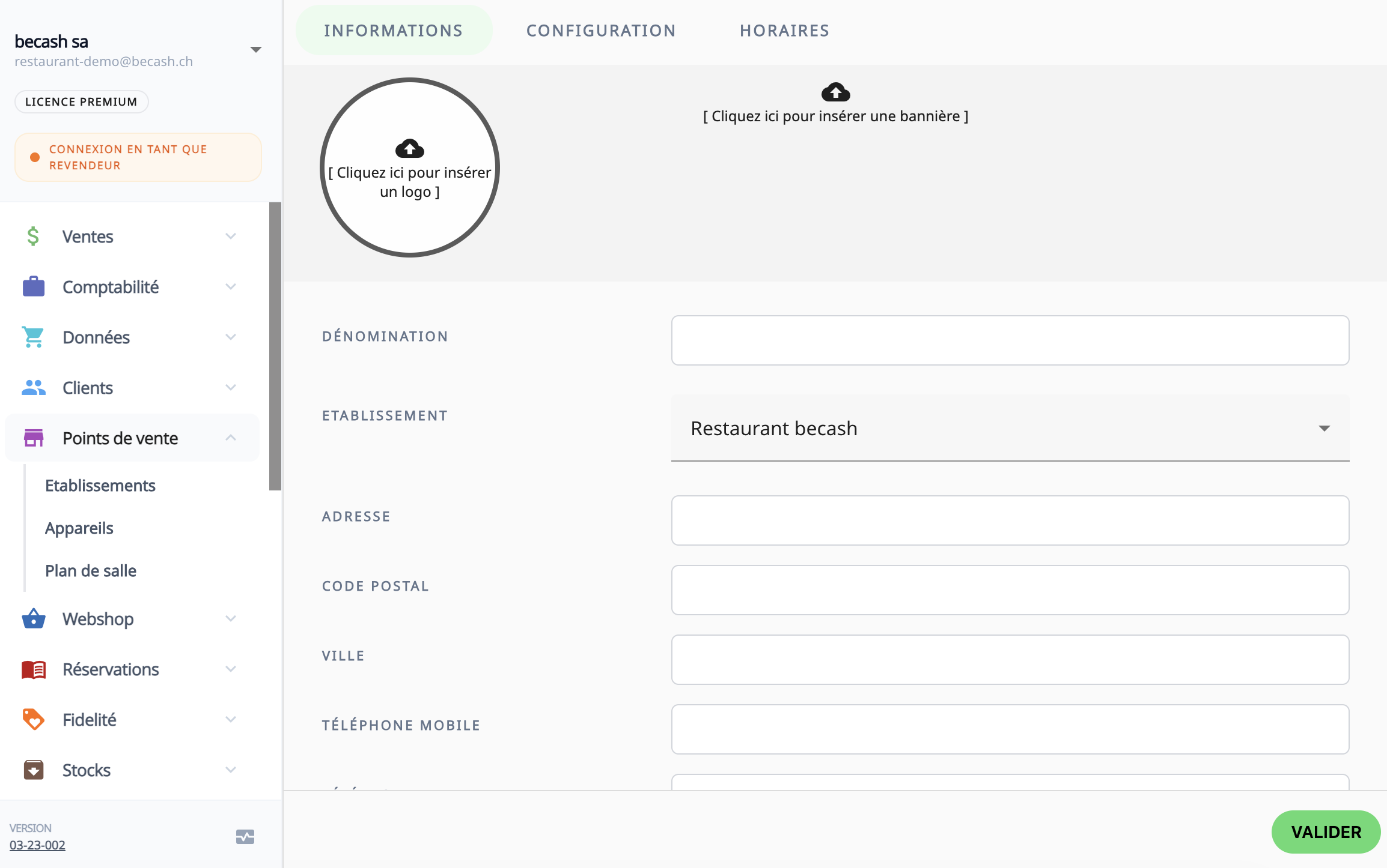 à droite de "POINTS DE VENTE". - Complétez ou modifiez les informations