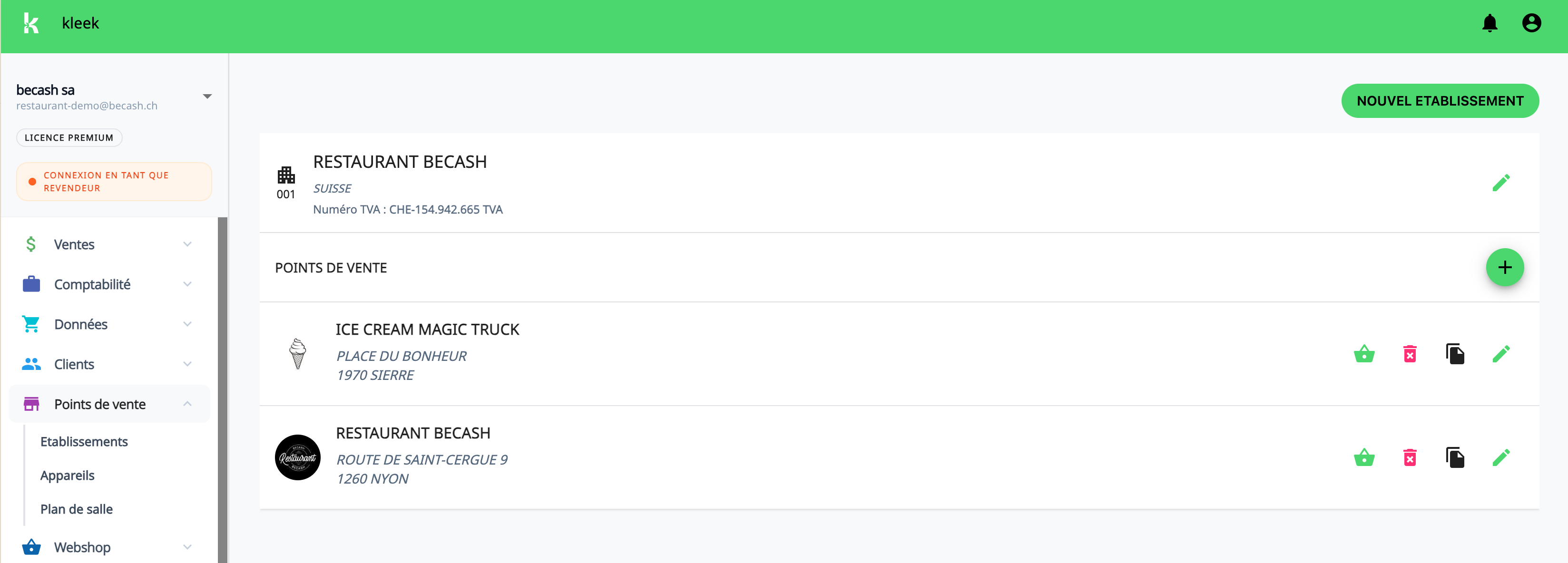 - Depuis l’écran principal, cliquez sur Mes points de vente > Etablissements