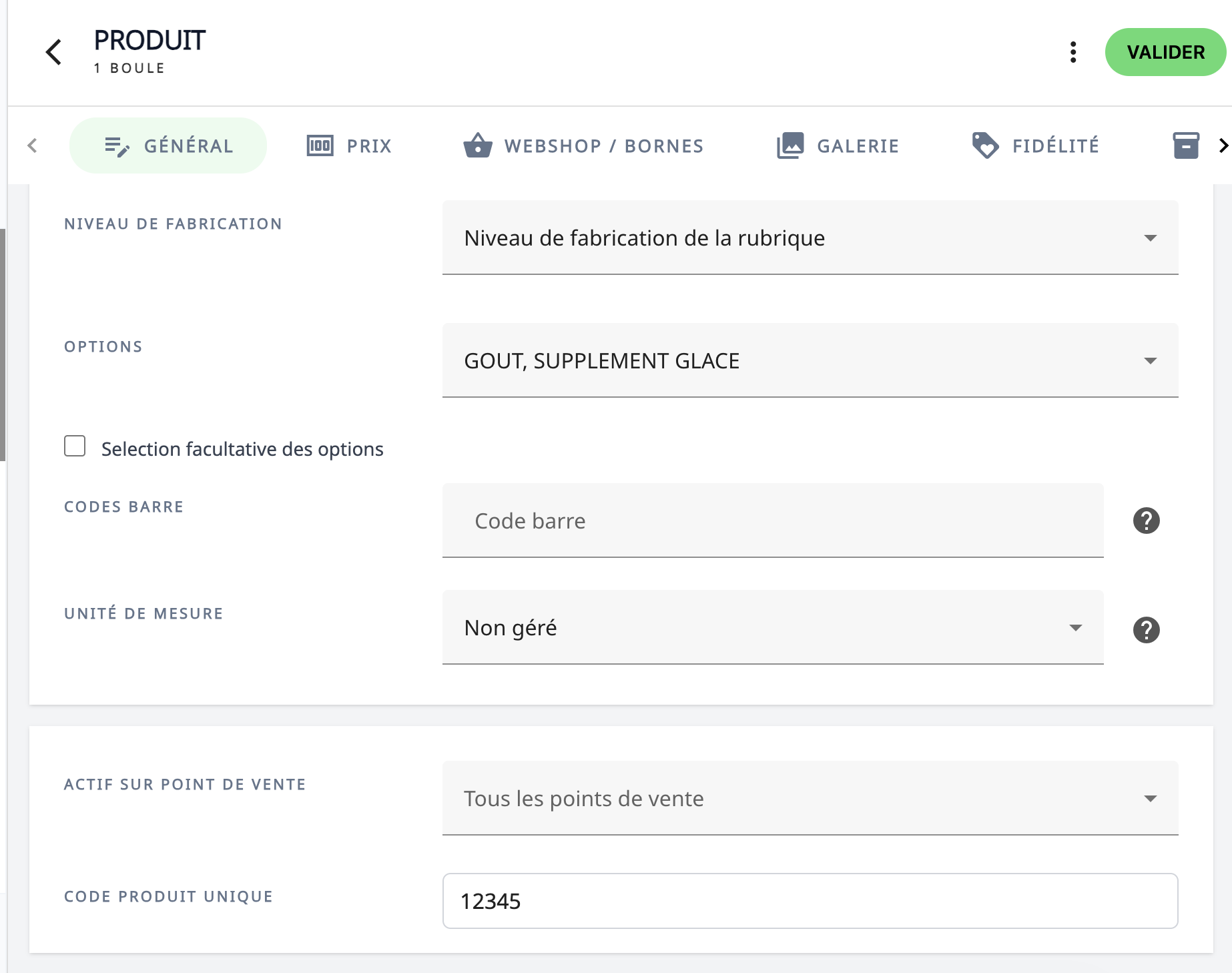 - Depuis la fiche du produit sous "Actif sur le point de vente" :