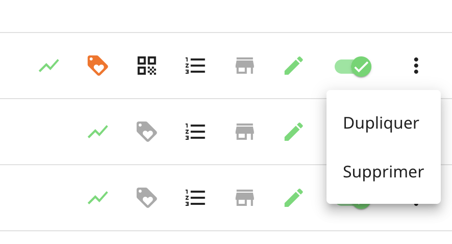 - Dupliquez votre produit existant (exemple : Café renversé) en cliquant sur