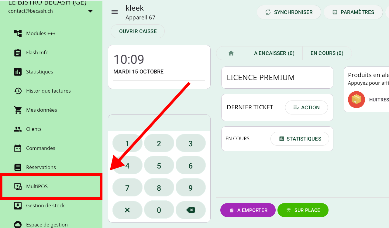- Cliquez sur l'onglet MultiPOS situé en bas à gauche de l'écran.