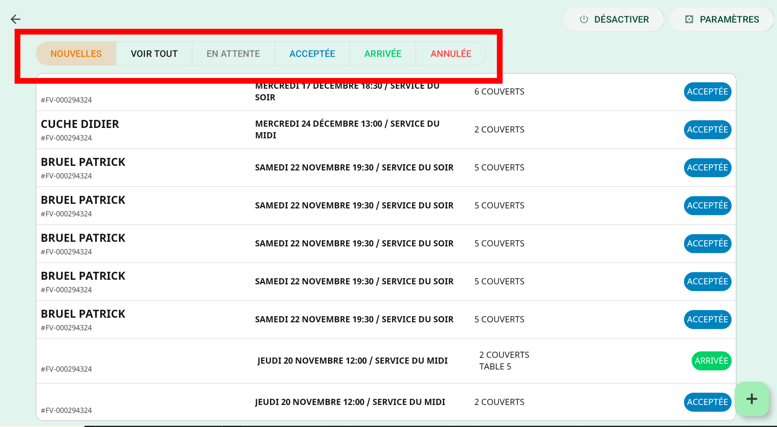 - Validez : la réservation apparaît dans l’onglet "Nouvelles"