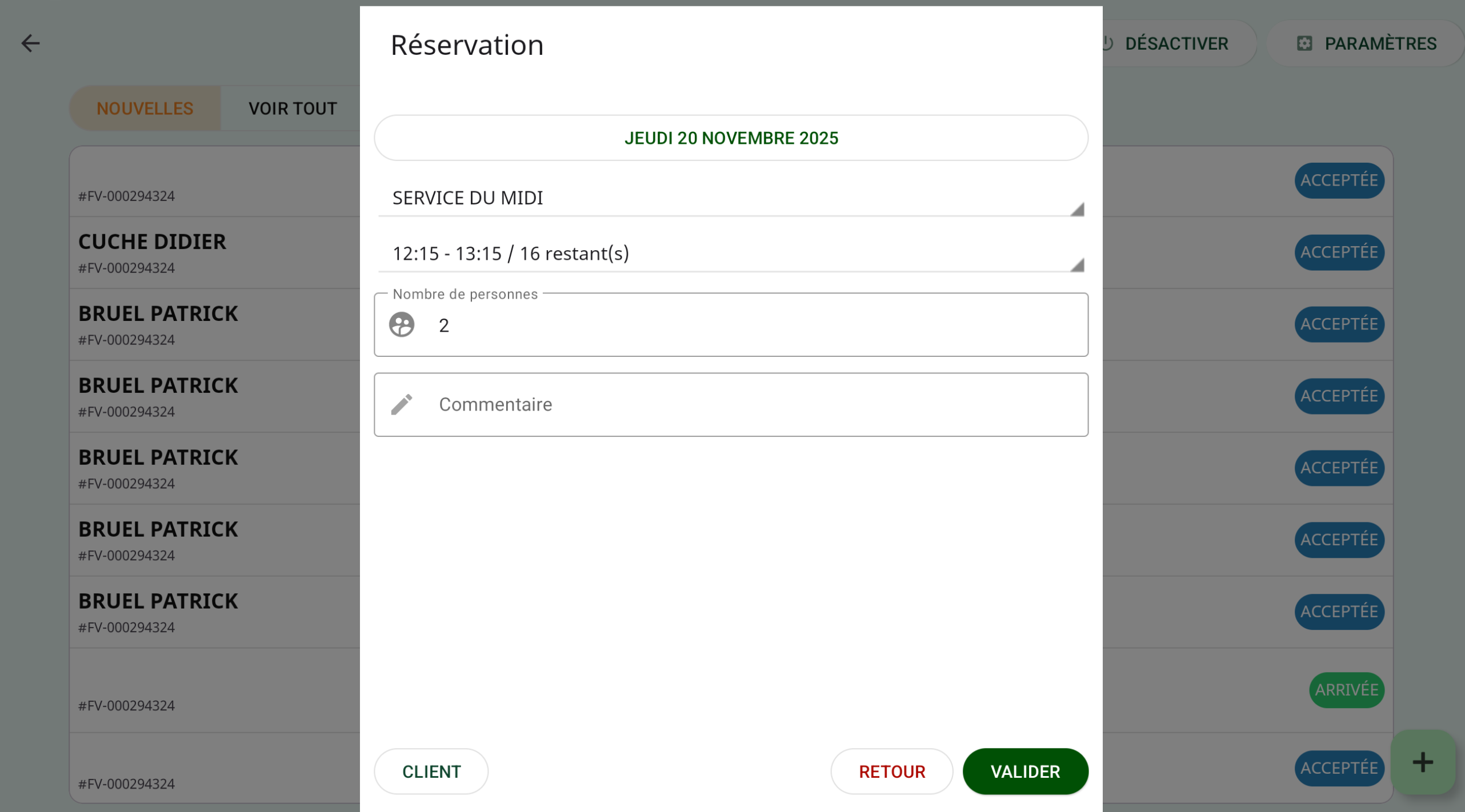 - Modifier : ajuster la date, l’heure, le nombre de personnes ou ajouter un commentaire.
